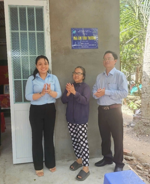 Hưởng ứng chương trình “Chung tay xoá nhà tạm, nhà dột nát” do Hội Liên hiệp Phụ nữ tỉnh Bến Tre phát động. Sáng ngày 22/4/2025, Quỹ Hỗ trợ phụ nữ phát triển kinh tế tỉnh Bến Tre phối hợp cùng Hội Liên hiệp Phụ nữ huyện Bình Đại và chính quyền địa phương xã Vang Quới Tây tổ chức lễ bàn giao căn nhà “Mái ấm tình thương” cho bà Trần Thị Ngọc Hoà – thành viên vay vốn có hoàn cảnh khó khăn, ngụ tại ấp Vinh Hội, xã Vang Quới Tây, huyện Bình Đại.