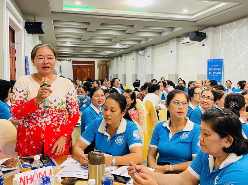 Khóa tập huấn “ Giáo dục tài chính” do Quỹ hỗ trợ Cộng đồng Đinh Thiện Lý phối hợp cùng Quỹ hỗ trợ phụ nữ phát triển kinh tế tại tỉnh Vĩnh Long diễn ra từ tháng 3 đến tháng 9/2025 với 11 lớp, thu hút gần 1.100 hội viên phụ nữ và thành viên vay vốn của Quỹ tham gia. Nội dung được thiết kế gần gũi, thực tiễn, tập trung vào các kỹ năng cốt lõi như quản lý tài chính cá nhân, sử dụng vốn vay hiệu quả, phương pháp ghi chép thu–chi rõ ràng và lập kế hoạch chi tiêu hằng ngày. Hình thức học kết hợp giữa lý thuyết, thảo luận nhóm và chia sẻ kinh nghiệm thực tế giúp học viên tiếp thu dễ dàng, có thể áp dụng ngay vào đời sống gia đình và hoạt động kinh tế hộ.