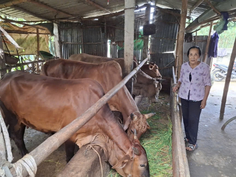 Sau các chu kỳ vốn cùng với sự nổ lực của các thành viên trong gia đình, đến nay gia đình cô đã được UBND xã công nhận thoát nghèo vào năm 2021, kinh tế gia đình cũng từ đó được cải thiện đáng kể. Các con cũng có việc làm tương đối ổn định. Hiện nay, do điều kiện sức khỏe hạn chế nên cô đã nghĩ thu mua phế liệu mà chủ yếu tập trung vào chăn nuôi. Trong chu kỳ vay vốn gần nhất cô đã mạnh dạn đăng ký vay với số tiền 25 triệu đồng cộng với vốn tự có của gia đình cô đã mua thêm 2 con bò với số tiền 30 triệu đồng, nâng tổng số đàn bò của gia đình là 5 con bò. Hiện tại 5 con bò đang nuôi đã có 4 con đang mang bầu gần đến ngày sinh sản.
