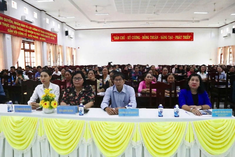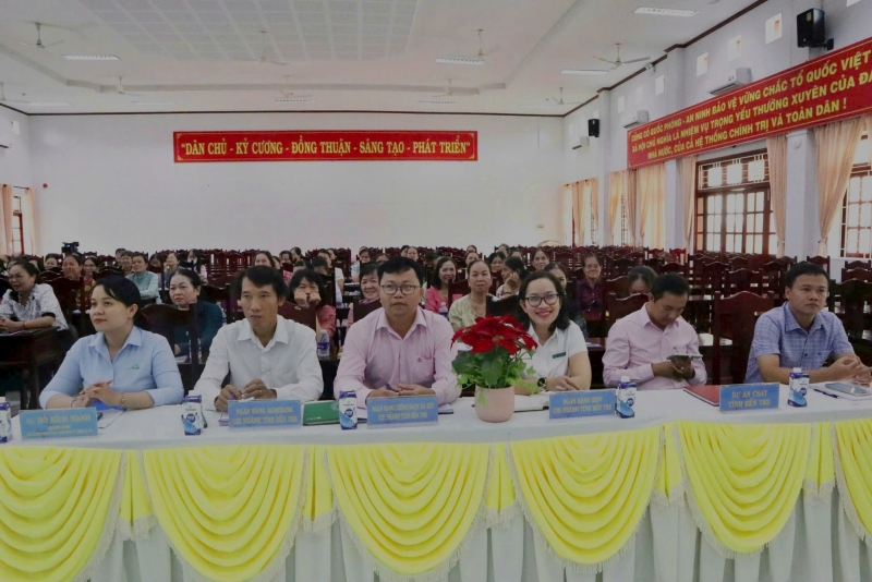 Tham dự Hội thảo có bà Nguyễn Thị Kim Thoa – Chủ tịch Hội LHPN tỉnh; bà Hồ Bích Hạnh – Giám đốc Quỹ HTPNPTKT tỉnh; đại diện lãnh đạo các ngân hàng Agribank, NHCSXH, BIDV Bến Tre. Về phía Lãnh đạo huyện Giồng Trôm có bà Nguyễn Thị Thu Phượng - Phó Bí thư thường trực Huyện ủy - Chủ tịch HĐND huyện, cùng đại diện các ban ngành, đoàn thể huyện, ông Nguyễn Minh Trung – Huyện uỷ viên - Phó chủ tịch Uỷ ban nhân dân huyện và 100 đại biểu là đại diện UBND, Hội LHPN các xã, hội viên phụ nữ đang trực tiếp vay vốn cũng như phụ trách các nguồn vốn do Hội LHPN quản lý.
