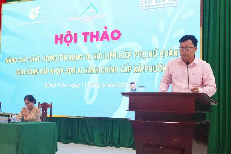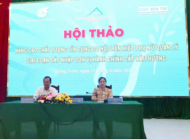 Sáng ngày 11/6/2025, Hội Liên hiệp Phụ nữ tỉnh Bến Tre, Quỹ Hỗ trợ Phụ nữ phát triển kinh tế tỉnh Bến Tre và Dự án phát triển chuỗi giá trị nông nghiệp thông minh thích ứng biến đổi khí hậu tại Bến Tre (CSAT) đã tổ chức buổi Hội thảo với chủ đề “Nâng cao chất lượng tín dụng do Hội Phụ nữ quản lý trong giai đoạn sáp nhập đơn vị hành chính cấp xã/phường” tại địa bàn huyện Giồng Trôm.