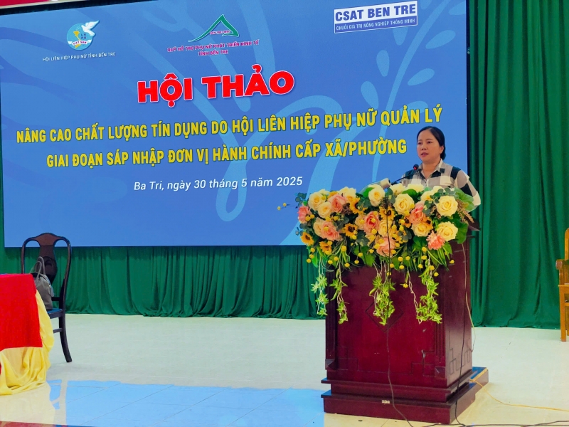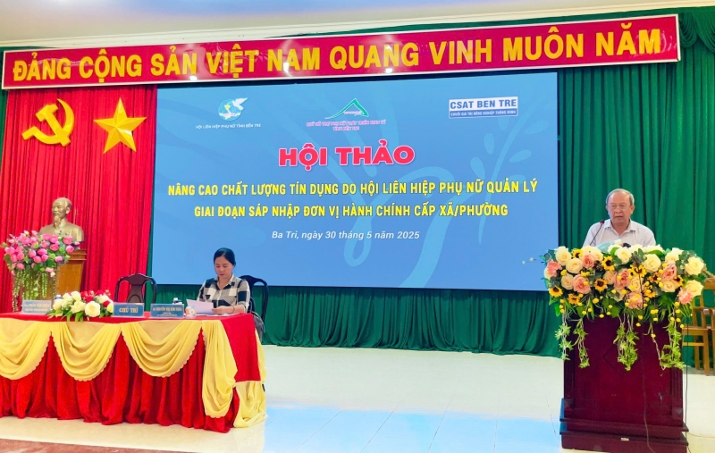 Nhằm nâng cao hiệu quả hoạt động tín dụng và hỗ trợ phụ nữ phát triển kinh tế trong bối cảnh sáp nhập đơn vị hành chính cấp xã/phường, sáng ngày 30/05/2025 tại Hội trường UBND huyện Ba Tri, Hội Liên hiệp Phụ nữ tỉnh Bến Tre, Quỹ Hỗ trợ phụ nữ phát triển kinh tế tỉnh Bến Tre và Ban quản lý Dự Án CSAT tỉnh tổ chức hội thảo chuyên đề “Nâng cao chất lượng tín dụng do Hội LHPN quản lý trong giai đoạn sáp nhập đơn vị hành chính cấp xã/ phường”.