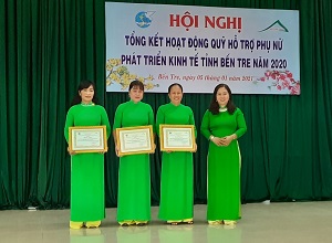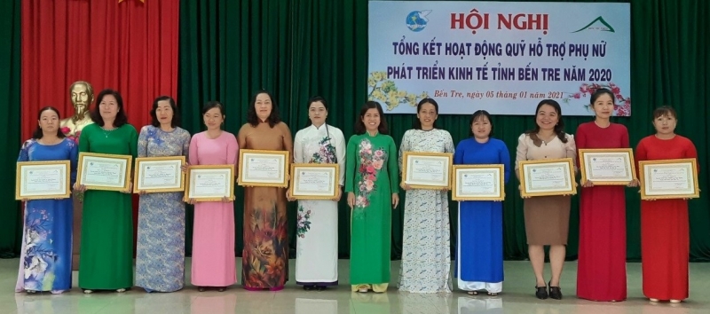 Sáng ngày 05/01/2021, tại Hội trường khối Mặt trận và đoàn thể tỉnh, Quỹ hỗ trợ Phụ nữ phát triển kinh tế tỉnh Bến Tre (gọi tắt là Quỹ) đã tổ chức hội nghị tổng kết hoạt động Quỹ năm 2020 và đề ra phương hướng hoạt động trong năm 2021. Đến dự Hội nghị có đại diện lãnh đạo , Trưởng Ban kinh tế - GĐXH của Hội LHPN tỉnh, các ông bà trong Hội đồng quản lý, Ban kiểm soát, Ban giám đốc, Ban quản lý các phòng giao dịch, cán bộ Quỹ, 25 chị Chủ tịch/Phó chủ tịch Hội LHPN đại diện cho 25 tập thể BCH Hội và 25 cá nhân Chủ tịch/PCT Hội LHPN xã được xét khen thưởng trong năm 2020.