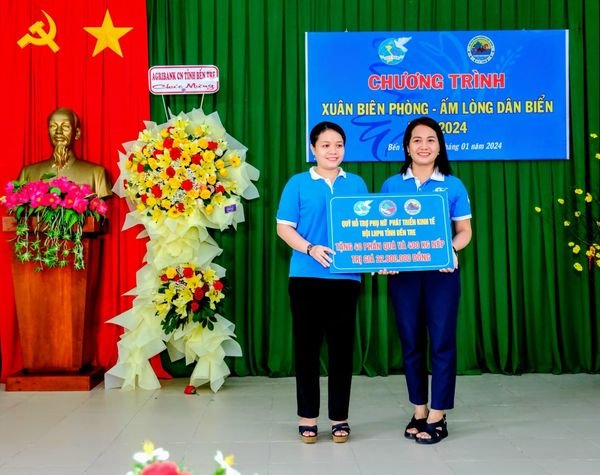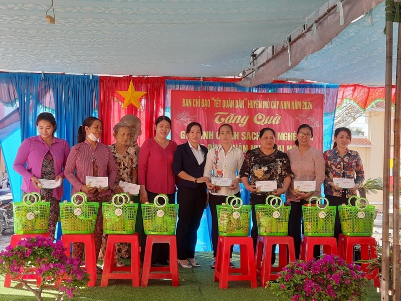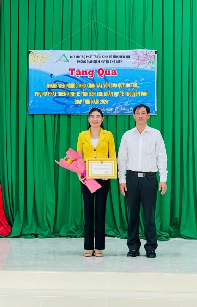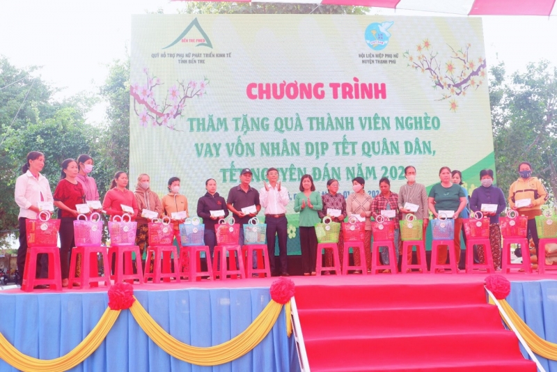 Trong những ngày Xuân đến cận kề, Quỹ Hỗ trợ Phụ nữ phát triển kinh tế tỉnh Bến Tre đã đến từng địa phương trên địa bàn tỉnh Bến Tre để thăm hỏi, động viên, chia sẽ và trao 896 phần quà cho hội viên và khách hàng vay vốn thuộc hộ nghèo, cận nghèo, khó khăn trên địa bàn toàn tỉnh, mỗi phần quà trị giá 500.000 đồng (gồm tiền mặt 200.000 đồng và quà 300.000 đồng với các loại nhu yếu phẩm cần thiết). Đồng thời Quỹ cũng đã trao 40 phần quà mỗi phần trị giá 300.000 đồng (gồm các loại nhu yếu phẩm) cho người dân có hoàn cảnh đặc biệt khó khăn tại các xã Mỹ An, Mỹ Hưng, An Thạnh, An Điền thuộc địa bàn huyện Thạnh Phú.