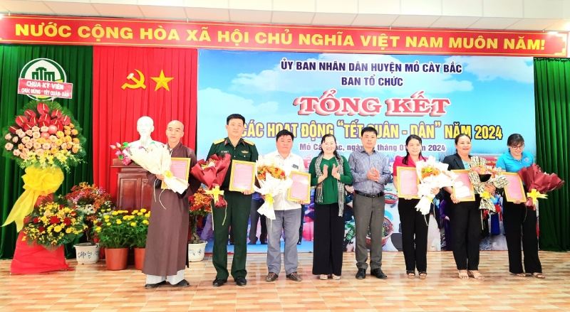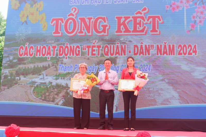 Hỗ trợ hoạt động “Xuân biên phòng - Ấm lòng dân biển” 200kg nếp cho Hội thi “Gói bánh tét – làm mức tết” và trao 50 phần quà mỗi phần trị giá 300.000 đồng (gồm các loại nhu yếu phẩm) cho người dân thuộc diện hộ nghèo, hộ có hoàn cảnh đặc biệt khó khăn cho các hộ tại 2 huyện Ba Tri và Thạnh Phú. Tổng kinh phí thực hiện các chương trình trên 500.000.000 đồng.