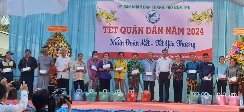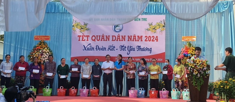 Nằm trong chuỗi hoạt động mừng Đảng, mừng Xuân Giáp Thìn năm 2024 và tích cực hưởng ứng hoạt động ngày tết Quân – Dân năm 2024 của Quỹ Hỗ trợ phụ nữ phát triển kinh tế tỉnh Bến Tre, góp phần cùng địa phương trên địa bàn Thành Phố Bến Tre thực hiện chính sách an sinh xã hội. Nhằm động viên, chia sẽ khó khăn với thành viên vay vốn là hộ nghèo, hộ cận nghèo và hộ có hoàn cảnh khó khăn cùng nhau vui xuân, đón tết Giáp Thìn năm 2024.