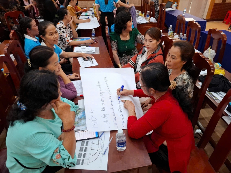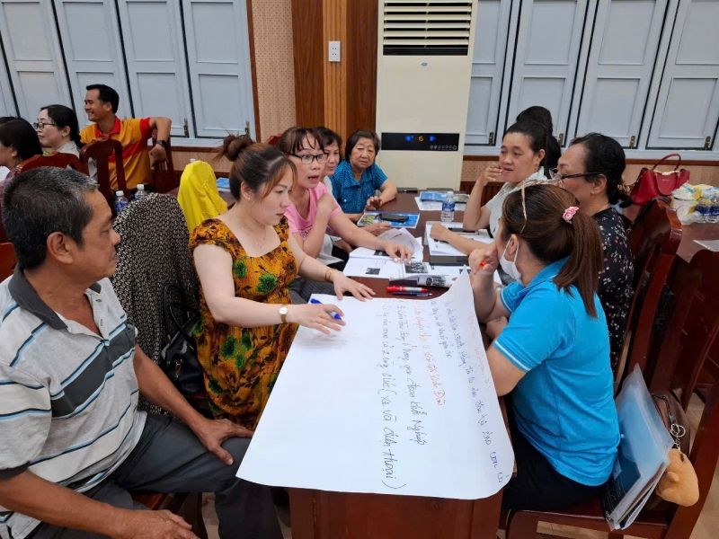 Lớp tập huấn diễn ra sôi nổi, các học viên tích cực tham gia thảo luận, chia sẽ các kinh nghiệm thực tế trong quản lý chi tiêu của hộ gia đình, tham gia thực hành nhóm giúp xác định mục tiêu tài chính, quản lý chi tiêu hộ gia đình và đưa ra kế hoạch tài chính của bản thân trong tương lai.