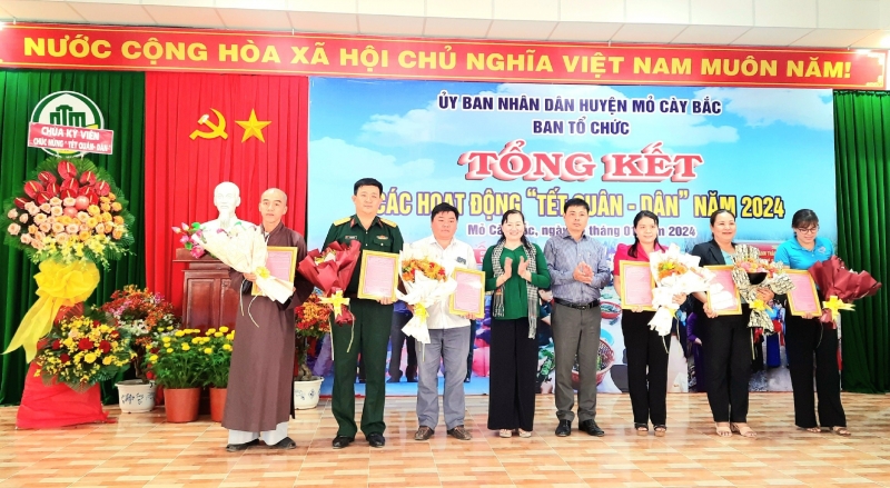 Ngày 26/01/2024, tại buổi tổng kết tổng kết các hoạt động “Tết Quân – Dân” năm 2024 tổ chức tại xã Thanh Tân, huyện Mỏ Cày Bắc có bà Hồ Bích Hạnh – Thành viên HĐQL - Giám đốc Quỹ Hỗ trợ phụ nữ phát triển kinh tế tỉnh Bến Tre; ông Lương Minh Phú – Trưởng bộ phận kiểm soát nội bộ tham dự.