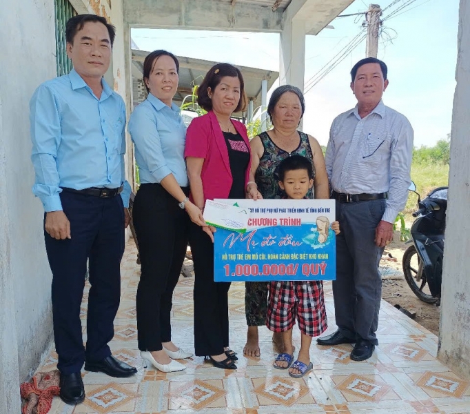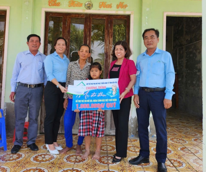 Trong tháng 12 năm 2024, đại diện lãnh đạo Quỹ Hỗ trợ Phụ nữ phát triển kinh tế tỉnh Bến Tre phối hợp cùng với chính quyền địa phương đã đến thăm hỏi, chia sẽ, động viên và trao kinh phí quý 3, 4 cho các bé có hoàn cảnh đặc biệt khó khăn tại xã An Thạnh huyện Thạnh Phú và xã Long Thới huyện Chợ Lách cho 05 bé với tổng kinh phí là 10.000.000 đồng (1tr/bé/quý).