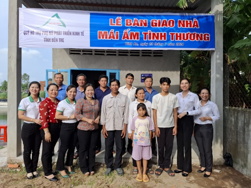 Ngày 23/07/2024 tại ấp An Quới xã Vĩnh An. Quỹ hỗ trợ phụ nữ phát triển kinh tế tỉnh Bến Tre phối hợp Hội LHPN xã Vĩnh An tổ chức Lễ bàn giao “Mái ấm tình thương” cho Chị Nguyễn Thị Xà Kha là Hội viên phụ nữ nghèo có hoàn cảnh đặc biệt khó khăn về nhà ở.