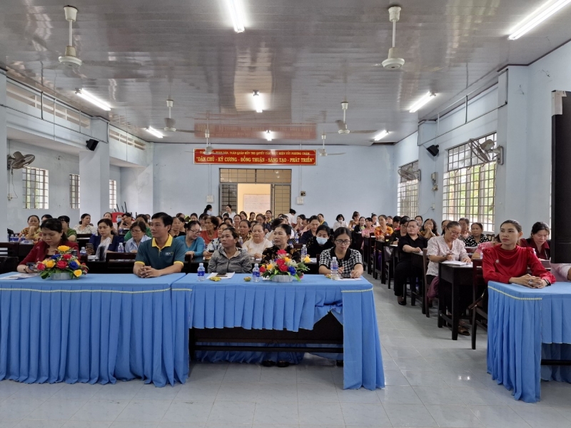 Tham dự buổi tập huấn có bà Hồ Bích Hạnh – thành viên HĐQL - Giám đốc Quỹ HTPNPTKT tỉnh Bến Tre; bà Bùi Thị Thùy Duy - Phó Giám đốc Quỹ; bà Võ Thị Thanh Thủy – HUV - Chủ tịch Hội LHPN huyện - Trưởng phòng giao dịch Quỹ HTPNPTKT huyện Giồng Trôm; các cán bộ Ngân hàng BIDV phòng giao dịch Giồng Trôm, các cán bộ Quỹ cùng với 100 đại biểu là cụm trưởng và thành viên vay vốn tham dự lớp tập huấn trên địa bàn huyện.