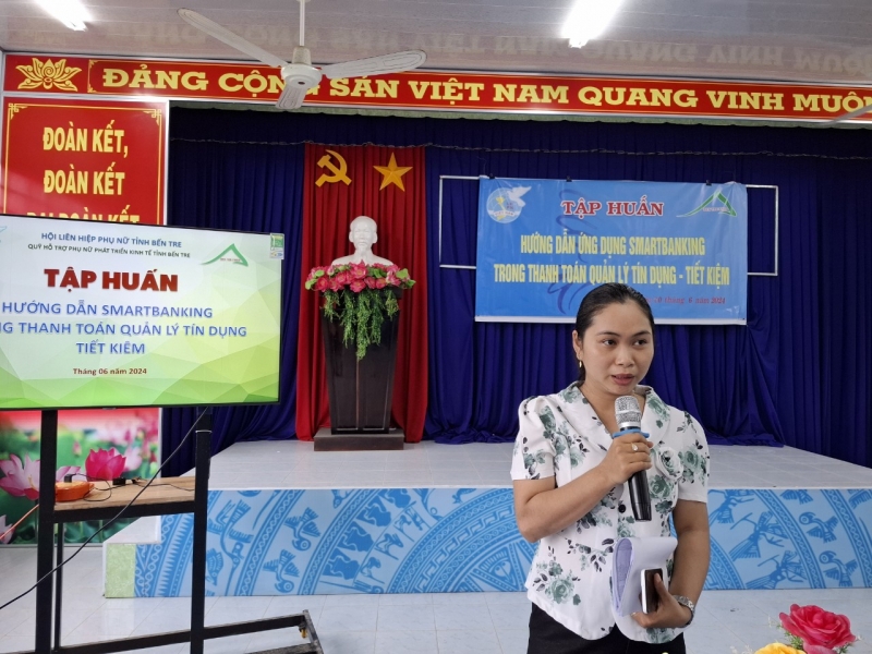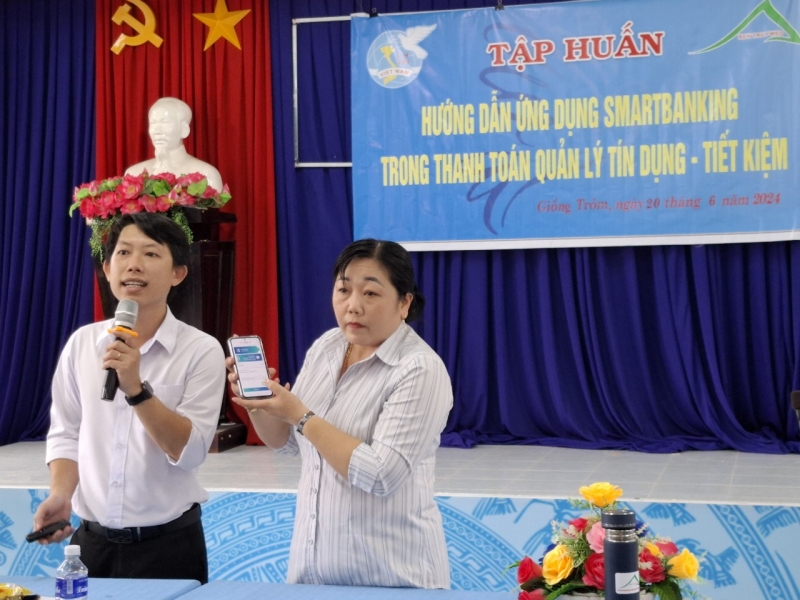 Hướng tới mục tiêu nâng cao chất lượng phục vụ, tạo điều kiện thuận lợi cho các đối tượng là thành viên vay vốn tiếp cận với tiện ích của chuyển đổi số. Ngày 20/06/2024, tại Hội trường Khối đoàn thể Mặt trận huyện Giồng Trôm, Quỹ HTPNPTKT tỉnh Bến Tre tổ chức lớp tập huấn “Hướng dẫn ứng dụng smartbanking trong thanh toán; quản lý tín dụng – tiết kiệm” cho cụm trưởng và thành viên vay vốn các chương trình TCVM của Quỹ.