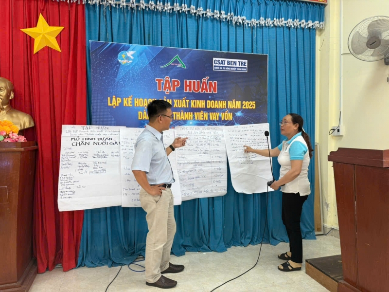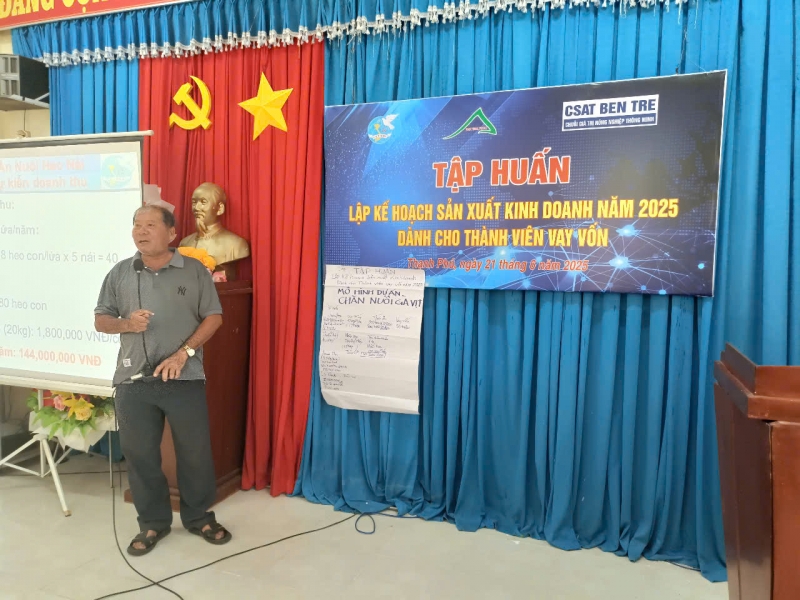 “Quỹ không chỉ là nơi cung cấp nguồn vốn ưu đãi mà còn là người đồng hành hỗ trợ kiến thức, kỹ năng nhằm giúp thành viên sử dụng vốn hiệu quả, phát triển kinh tế bền vững và nâng cao vị thế trong gia đình, xã hội.”Gửi lời cảm ơn dự án Csat Tỉnh đã cùng đồng hành và phối hợp vối Quỹ để mở các lớp tập huấn cho thành viên, đồng thời cũng biết ơn sâu sắc đến các giảng viên, các Thầy không ngại đường xa về với Quỹ HTPNPTKT Tỉnh Bến Tre nói chung với lớp tập huấn nói riêng giúp bổ sung kiến thức về lập kế hoạch sản xuất kinh doanh và truyền tải những thông tin bổ ích nhất đến thành viên vay vốn trên địa bàn.