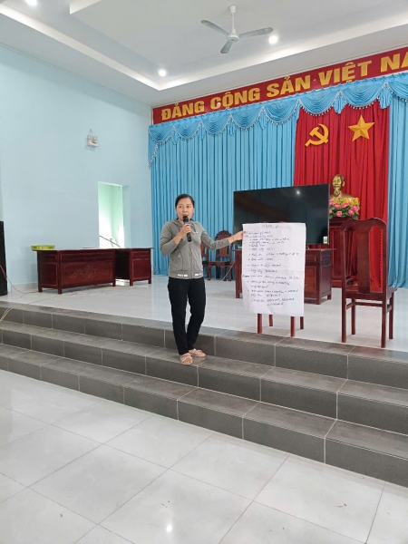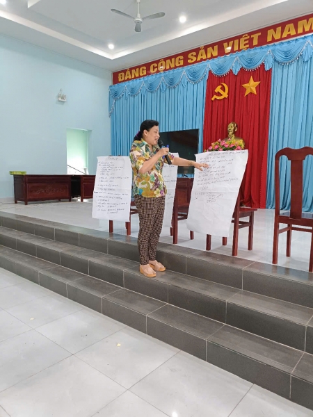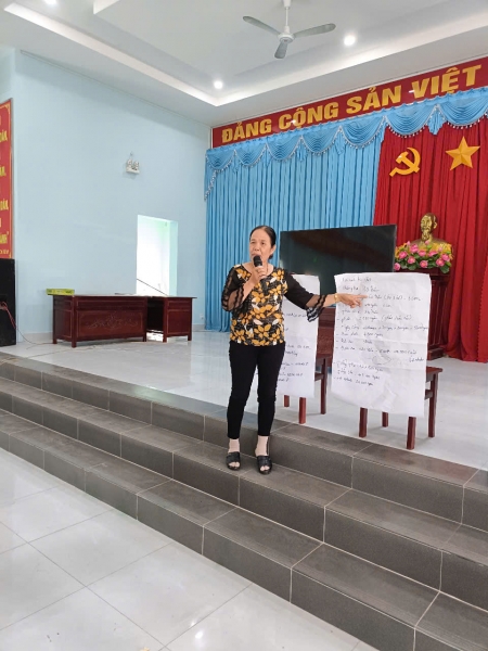 - Bà Nguyễn Thị Mơ- HUV- Chủ tịch Hội LHPN huyện – nguyên Trưởng PGD Quỹ HTPNPTKT huyện Thạnh Phú phát biểu chia sẻ trong buổi tập huấn: