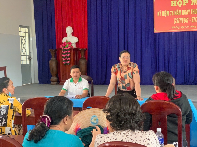 Ngày 29/07/2025 ông Nguyễn Minh Trí - nhân viên tín dụng Quỹ hỗ trợ phụ nữ phát triển kinh tế đã phối hợp với Hội LHPN xã Mỏ Cày đã truyền thông, giới thiệu về mô hình hoạt động, chính sách cho vay của Quỹ đến hội viên phụ nữ tại 4 ấp (Hội Thành, Phú Quới, Tân Lộc và Vĩnh Hòa).